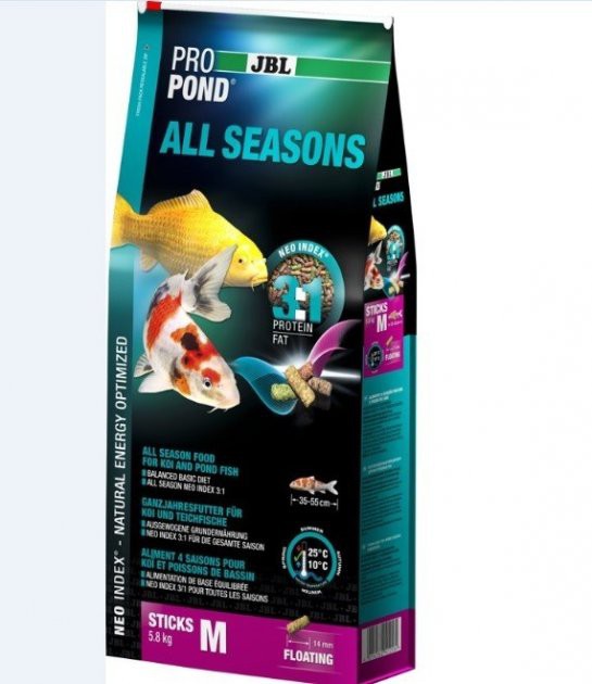 JBL ProPond All Seasons M корм для вряди - професійне харчування для ставкової риби. Цілорічний корм для дрібних коі та інших ставкових риб.