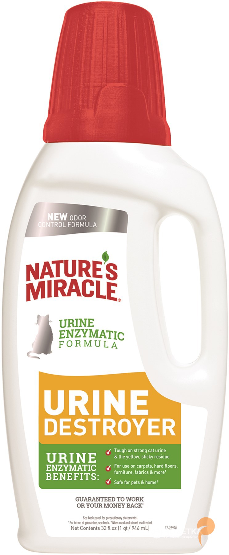 Видаляє жовті плями й осад від сечі кішок Ефективно усуває запах старих міток Можна використовувати на одязі, взутті, меблях, килимах Як працює? Містить уреазу — фермент, який розщеплює кристали сечової кислоти та сечовину, джерело сильного запаху сечі.