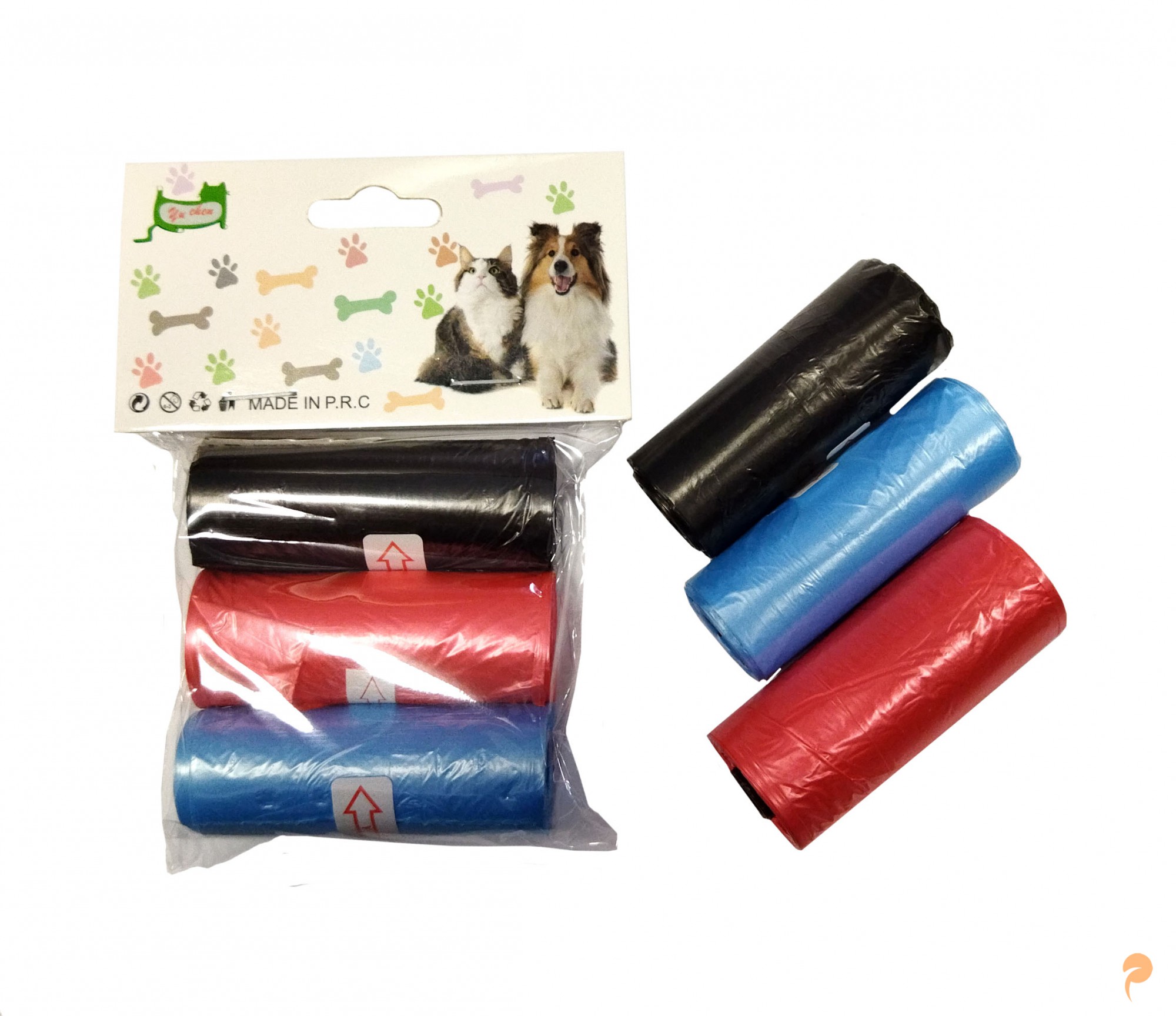 Міцні і зручні поліетиленові пакети для збирання фекалій за собаками під час прогулянок. В упаковку входить три рулони різних забарвлень