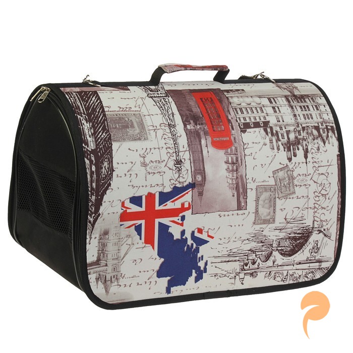 Сумка-переноска для собак і кішок пошита з міцного нейлону, який легко переться. Вставки з сітки гарантують гарне повітряне поводження.