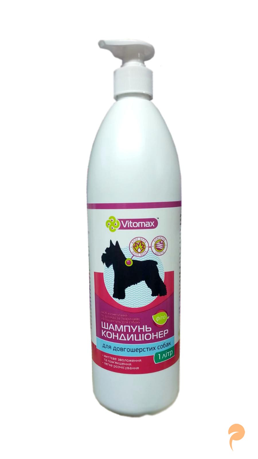 Фітошампунь ТМ Vitomax - натуральний шампунь-кондиціонер для довгошерстих собак на основі екстрактів рослин, корисних для шкіри і шерсті. Має протипаразитарний ефект.